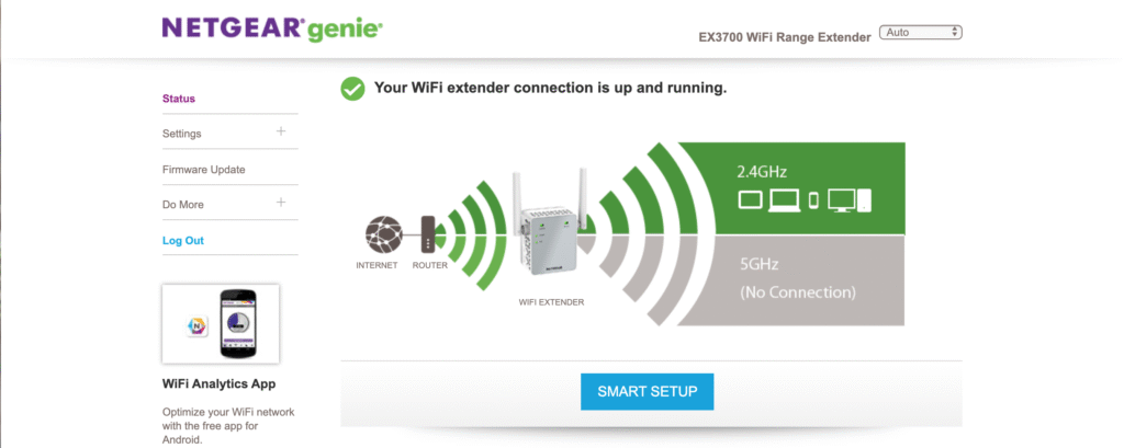 – When you are directed to the setup page you will be prompted to update the extender’s firmware automatically